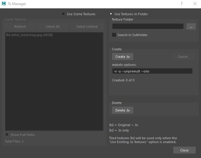 Then used the Arnold Tx Manager to create the .jpg images to become .tx format.