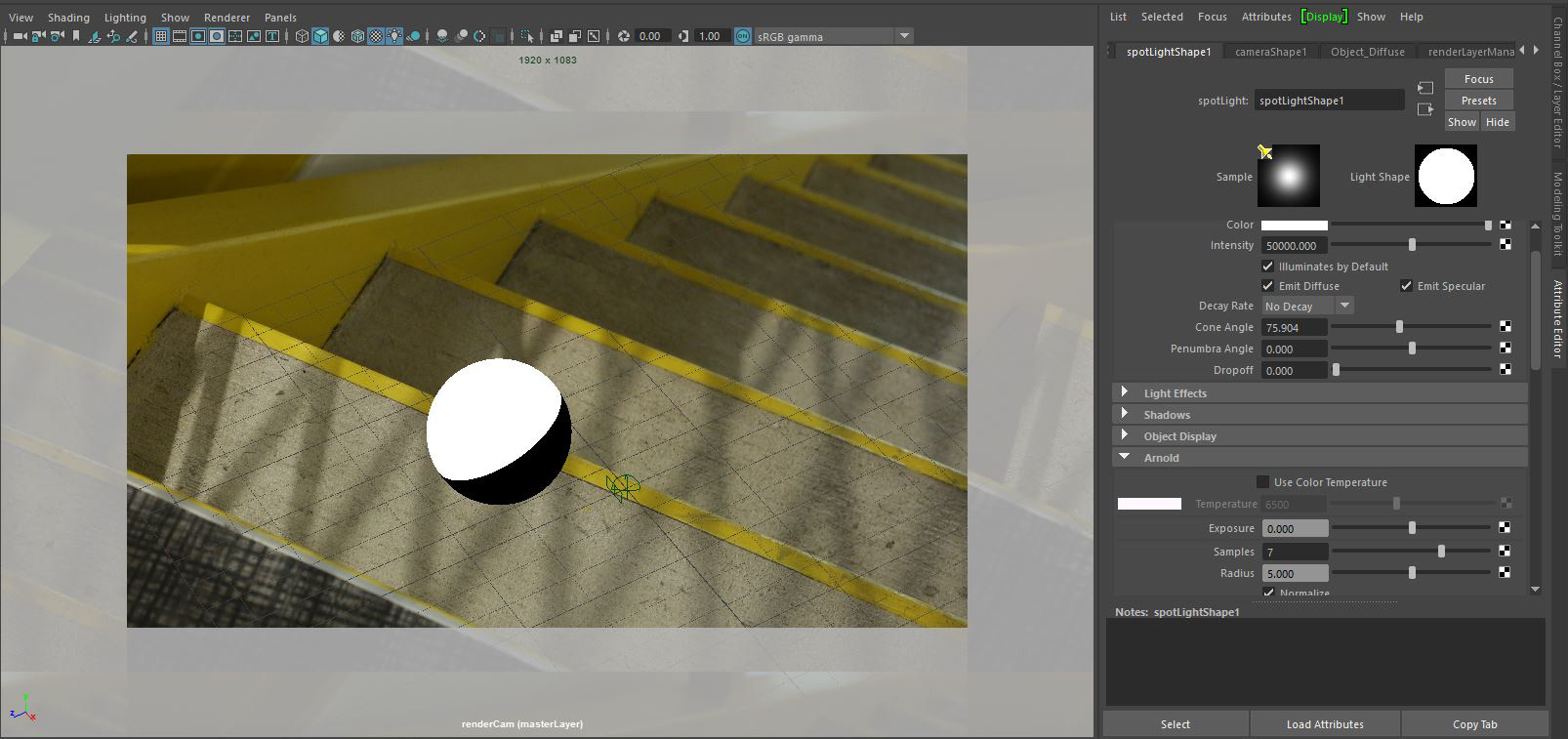(Projection Shadow being Projected onto an object with Maya Standard Surface Shader)