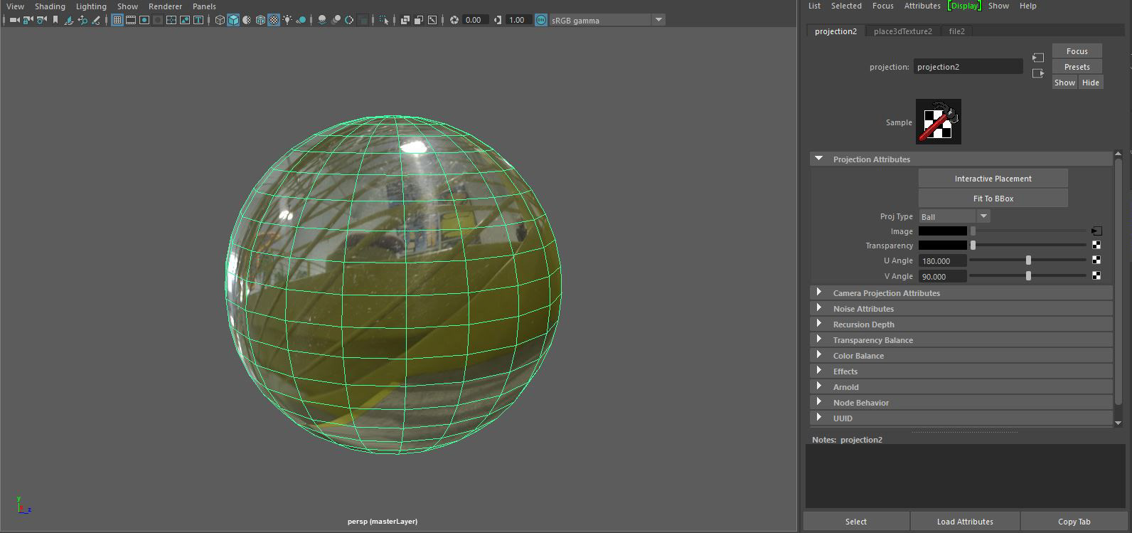 Rotate the place3Dtexture that was created through the projection to make the location of the chrome ball looking through the "RenderCam".